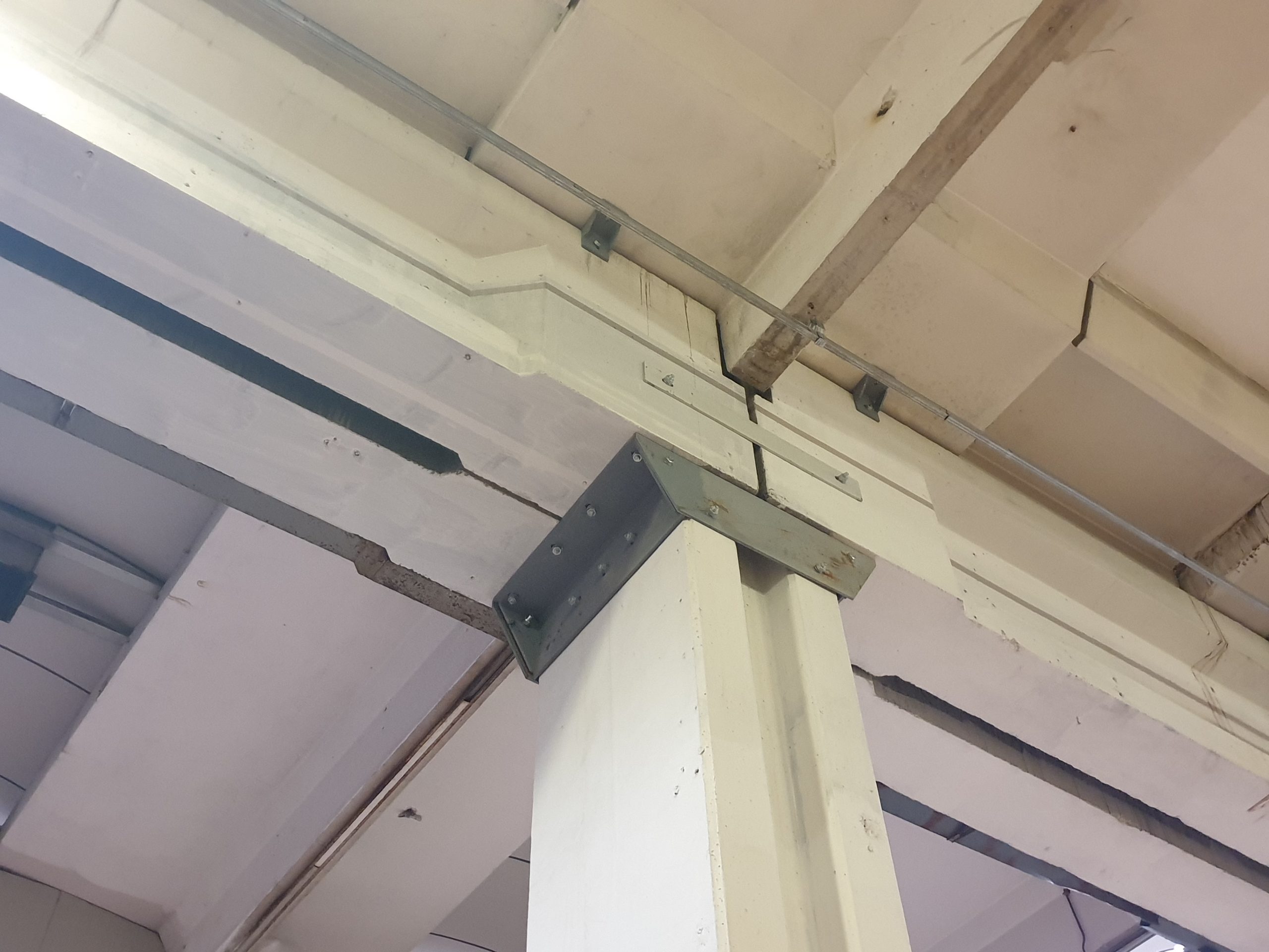 la progettazione dettagliata dei nodi di collegamento strutturali (travi, pilastri, tegoli, ecc…) ha portato alla realizzazione di elementi di rinforzo in acciaio costituiti da piastre e bulloni in grado di garantire la riduzione del rischio sismico della struttura prefabbricata dell’edificio. La progettazione e la realizzazione dell’intervento sono state strutturate in modo tale da garantire sia il superamento delle interferenze impiantistiche esistenti sia la continuità della produzione dei presidi medico-sanitari prodotti al suo interno.